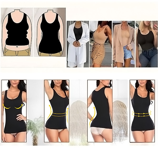 🎯 Scolpisci le tue forme con facilità! La nostra canottiera a compressione leviga la figura, sostiene il seno e migliora la postura, per sentirsi sicure di sé con qualsiasi look!