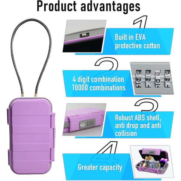 Perfetta per la spiaggia, la casa, l’ufficio, l’auto, il dormitorio o in viaggio, questa cassetta di sicurezza portatile soddisfa tutte le vostre esigenze di sicurezza.